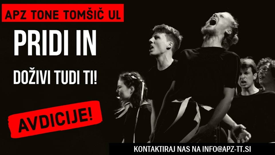 Si študent in si želiš peti, potovati, spoznati nove prijatelje? Vse to in še več lahko doživiš z nami! Pridi na avdicije in postani del APZ Tone Tomšič!