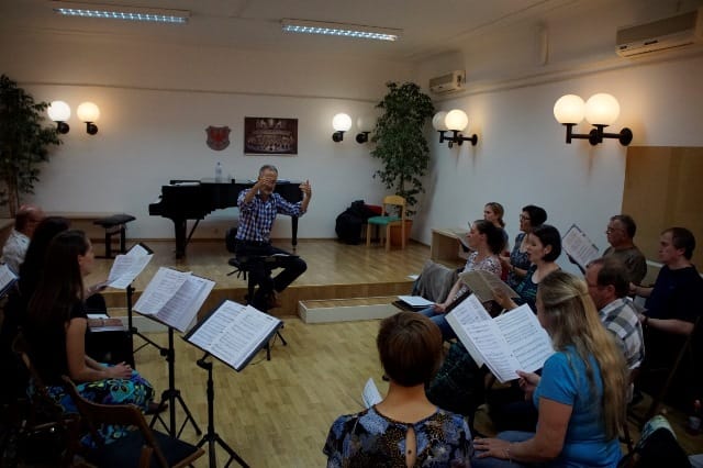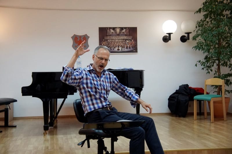 »To, kar bom zapisal zdaj, res ni v moji navadi: Je kakšna možnost, da bi vaje podaljšali za pol ure dnevno, če bi se mojster strinjal? Zdi se mi, da nam bo tole sodelovanje lahko res veliko podarilo in malo daljše vaje bi bile, po mojem mnenju, zelo dobrodošle.« Pevec Komornega pevskega zbora Mysterium je že po svojem prvem večeru vaj z dirigentom dr. Barlowom Bradfordom ubesedil željo mnogih udeležencev delavnice, ki v dvorani Glasbene šole Kranj gosti zvočni utrip tega tedna.