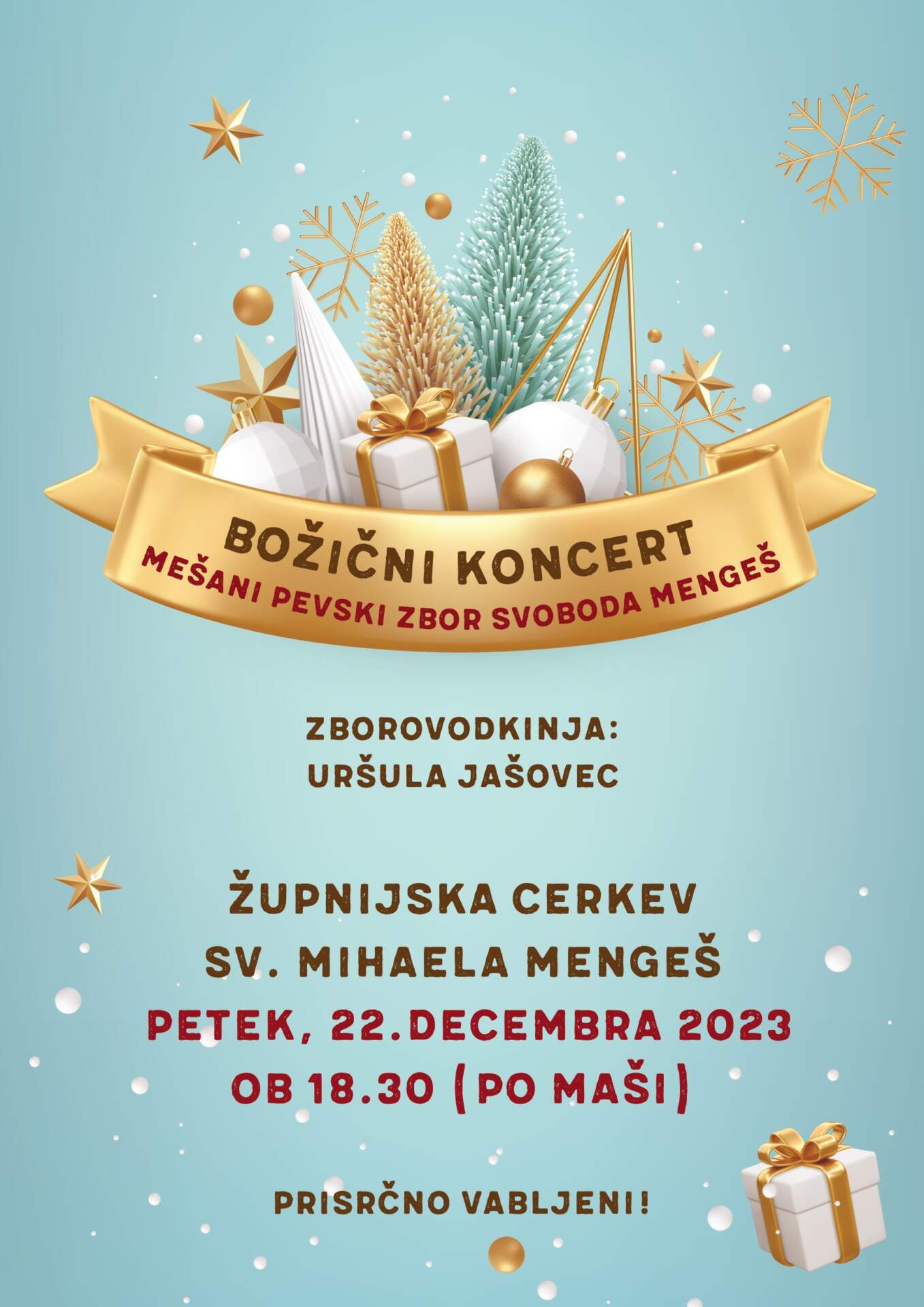 Tradicionalni Božični koncert mešanega pevskega zbora SVOBODA Mengeš v cerkvi Sv. Mihaela v Mengšu v petek, 22.decembra ob 18.30 (po večerni maši). Prijazno vabljeni.