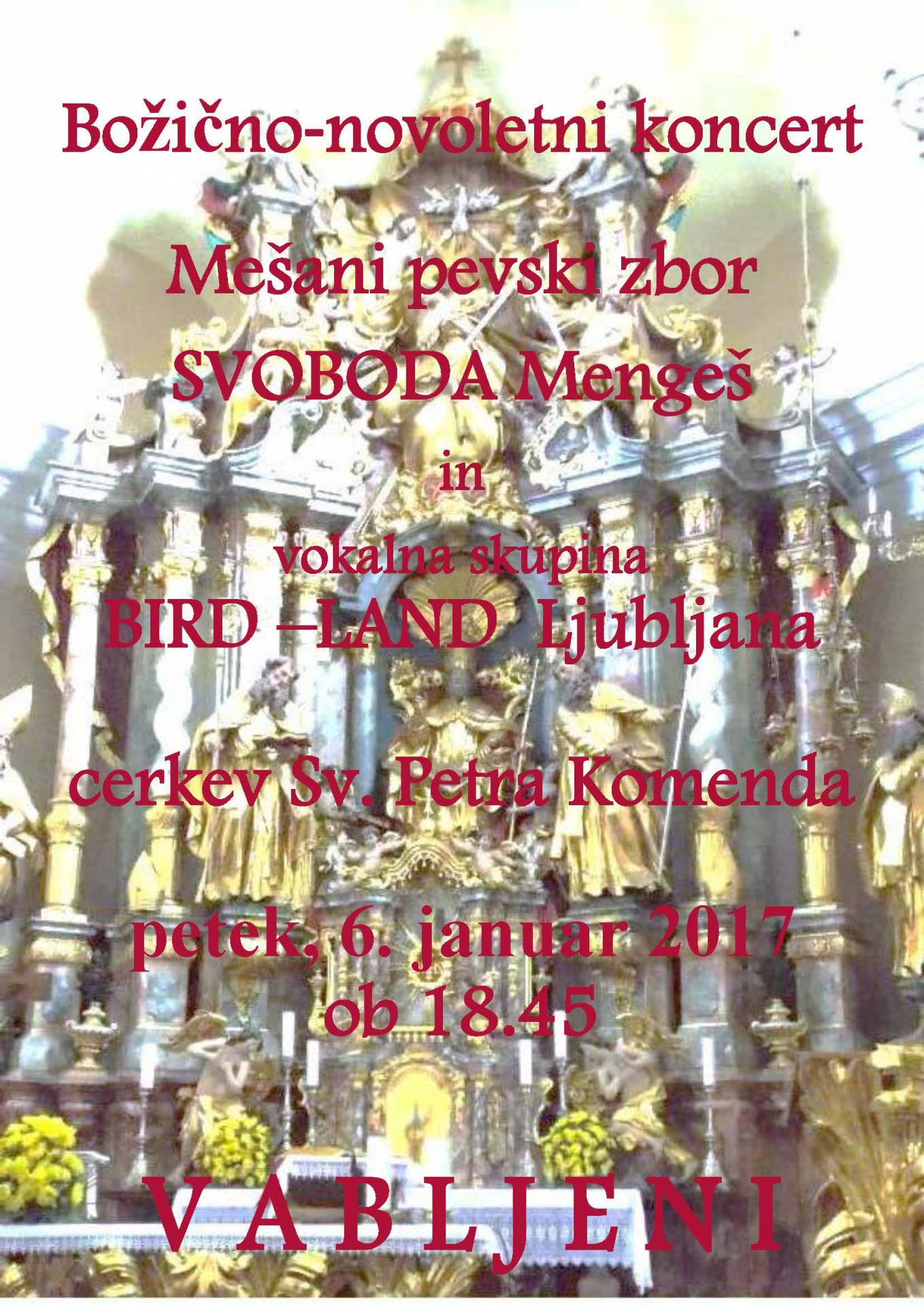 Na praznik Svetih treh kraljev, v petek, 6.1.2017, bomo zapeli v cerkvi Sv. Petra v Komendi. V goste smo povabili vokalno skupino BIRD-LAND iz Ljubljane. Privoščite si prijeten zborovski večer.