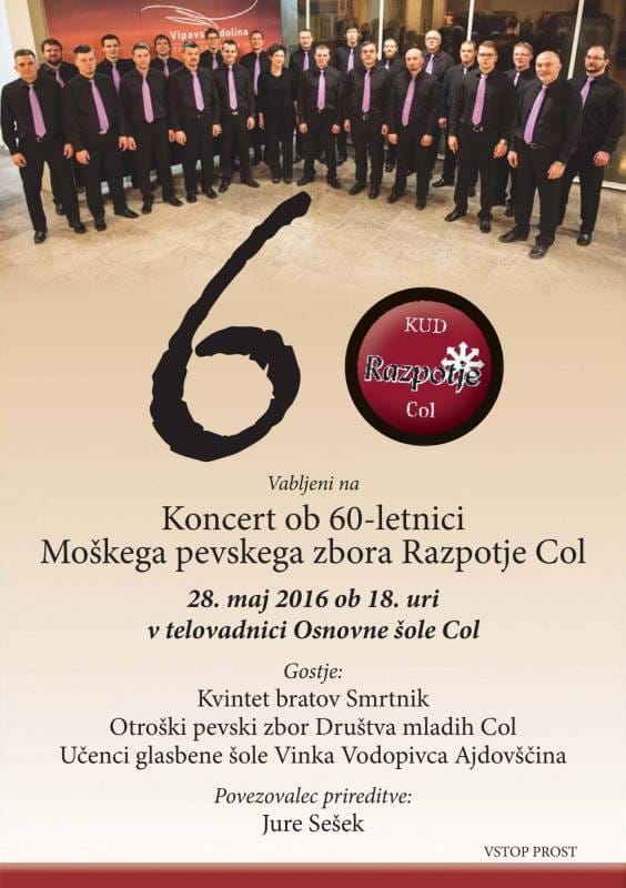 Koncert ob 60-letnici MoPZ Razpotje Col bo potekal 28. maja v telovadnici OŠ Col.