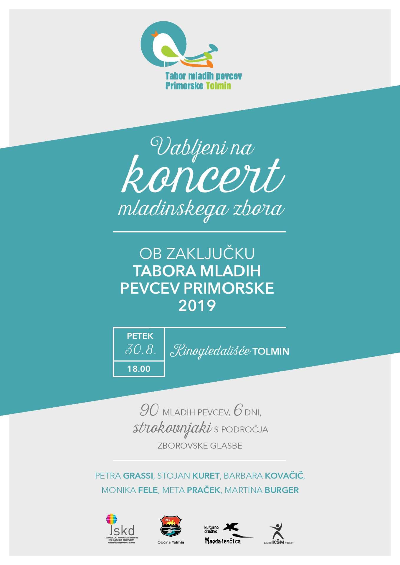 tudi letos smo kulturne organizacije KD Magdalenčica, JSKD Območna izpostava Tolmin in Zavod KŠM Tolmin združili moči in v Tolminu pripravili že tretji izobraževalno počitniški Tabor mladih pevcev Primorske.