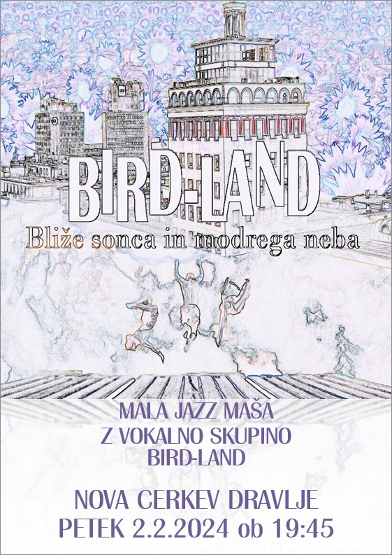 Vokalna skupina Bird-land bo z Malo jazz mašo nastopila v Ljubljani – v novi cerkvi v Dravljah. Po tem nastopu v Ljubljani letos ne bo več izvajala Male jazz maše.