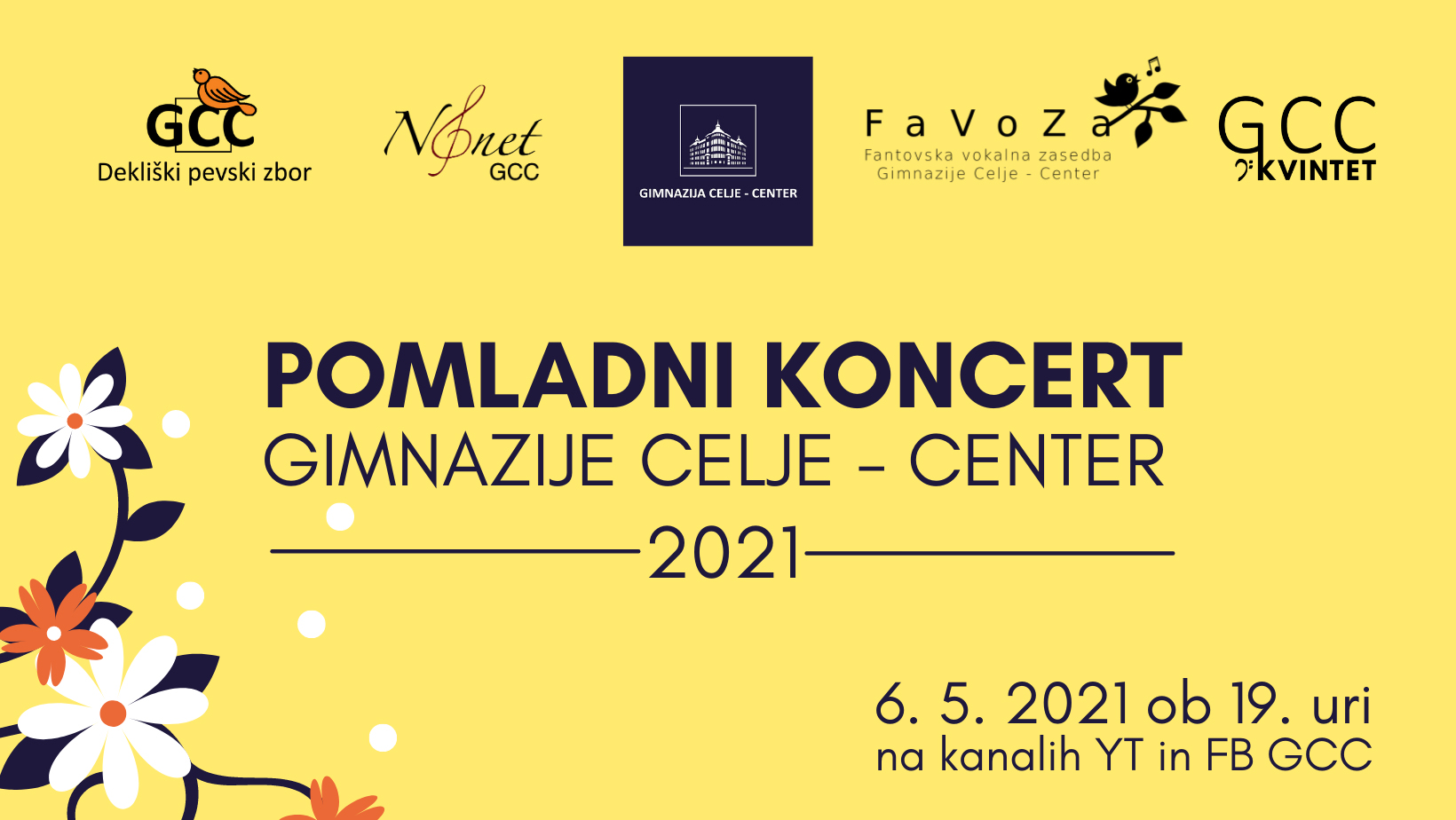 Na Gimnaziji Celje – Center (GCC) ima kultura tudi v teh nenavadnih koronskih časih posebno mesto. Pomemben del pestrega obšolskega in kulturnega utripa na šoli so glasbene zasedbe, ki se lahko pohvalijo v več kot šestdesetletno tradicijo in tudi v letošnjem šolskem letu niso »obmolknile«. Ne le to, pestro bero zasedb, v katerih ustvarja več kot 150 dijakov, je dopolnila celo nova zasedba GCC kvintet, ki jo sestavljajo učitelji glasbe. V četrtek, 6. 5., bodo ob 19h uri na kanalih YouTube in Facebook GCC pripravili tradicionalni pomladni koncert s katerim vsako leto uradno sklenejo glasbeno sezono in napovedo načrte za prihodnje šolsko leto. Virtualni dogodek, ki ga tudi letos posvečajo nedavnima praznikoma Mestne občine Celje in Dnevu upora proti okupatorju, bližnjemu Dnevu Evrope in 30. obletnici razglasitve slovenske samostojnosti, so tokrat oblikovali Dekliški pevski zbor pod vodstvom Davida Preložnika, Nonet GCC pod vodstvom Barbare Arlič Kerstein, FaVoZa, fantovska vokalna zasedba pod vodstvom Gregorja Deleje, zasedba maturantk in maturantov glasbenih sestavov in GCC kvintet.