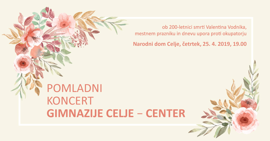 Vsakoletni Pomladni koncert glasbenih zasedb GCC letos posvečamo aprilskemu prazniku Mestne občine Celje, 200-letnici smrti Valentina Vodnika in Dnevu upora proti okupatorju.