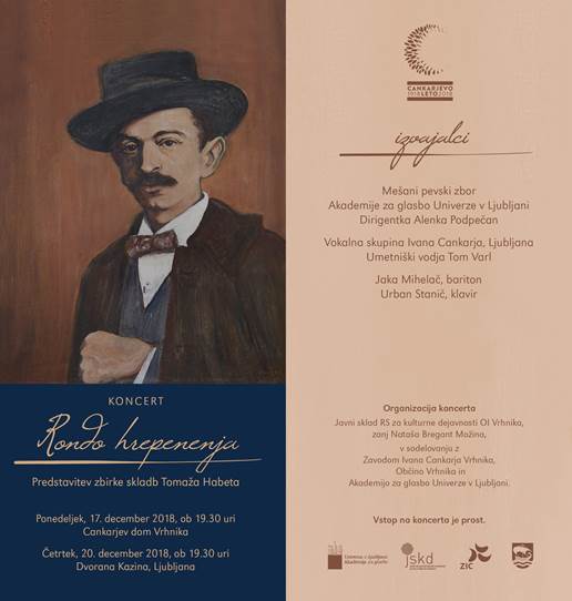 Vljudno Vas vabimo na zaključek vrhniškega projekta Cankar v glasbi, na predstavitveni koncert Habetove zbirke Rondo hrepenenja,