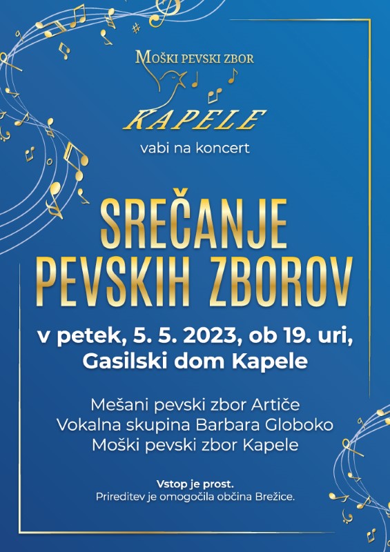Koncert treh zborovskih zasedb, ki delujejo na območju občine Brežice in se bodo predstavile s programom za območno revijo Pesem Posavja 2023