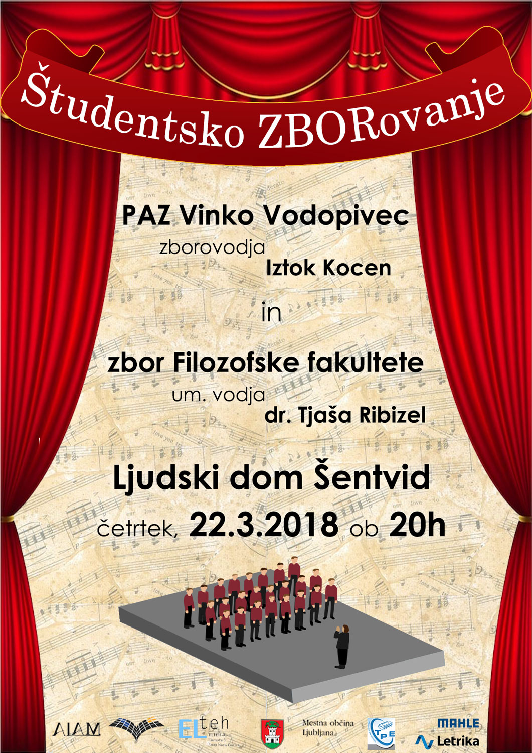 PAZ Vinko Vodopivec z zborovodjem Iztokom Kocenom bo tretji koncert cikla priredil v ljudskem domu Šentvid, na Prušnikovi cesti 99, v četrtek, 22.3 ob 20h. Tokrat se mu bo pridružil zbor Filozofske fakultete pod vodstvom dr. Tjaše Ribizel.