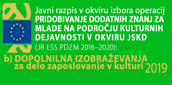 Posredujemo obvestili o aktualnih ESS javnih razpisih, ki brezposelnim mladim (do vključno 29 let starosti) omogočajo pridobivanje dodatnih znanj na področju kulturnih dejavnosti v okviru JSKD: