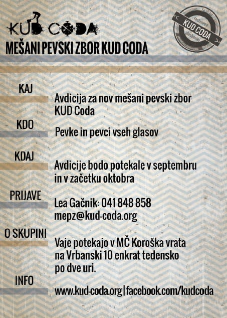 AVDICIJA za NOV Mešani pevski zbor KUD Coda