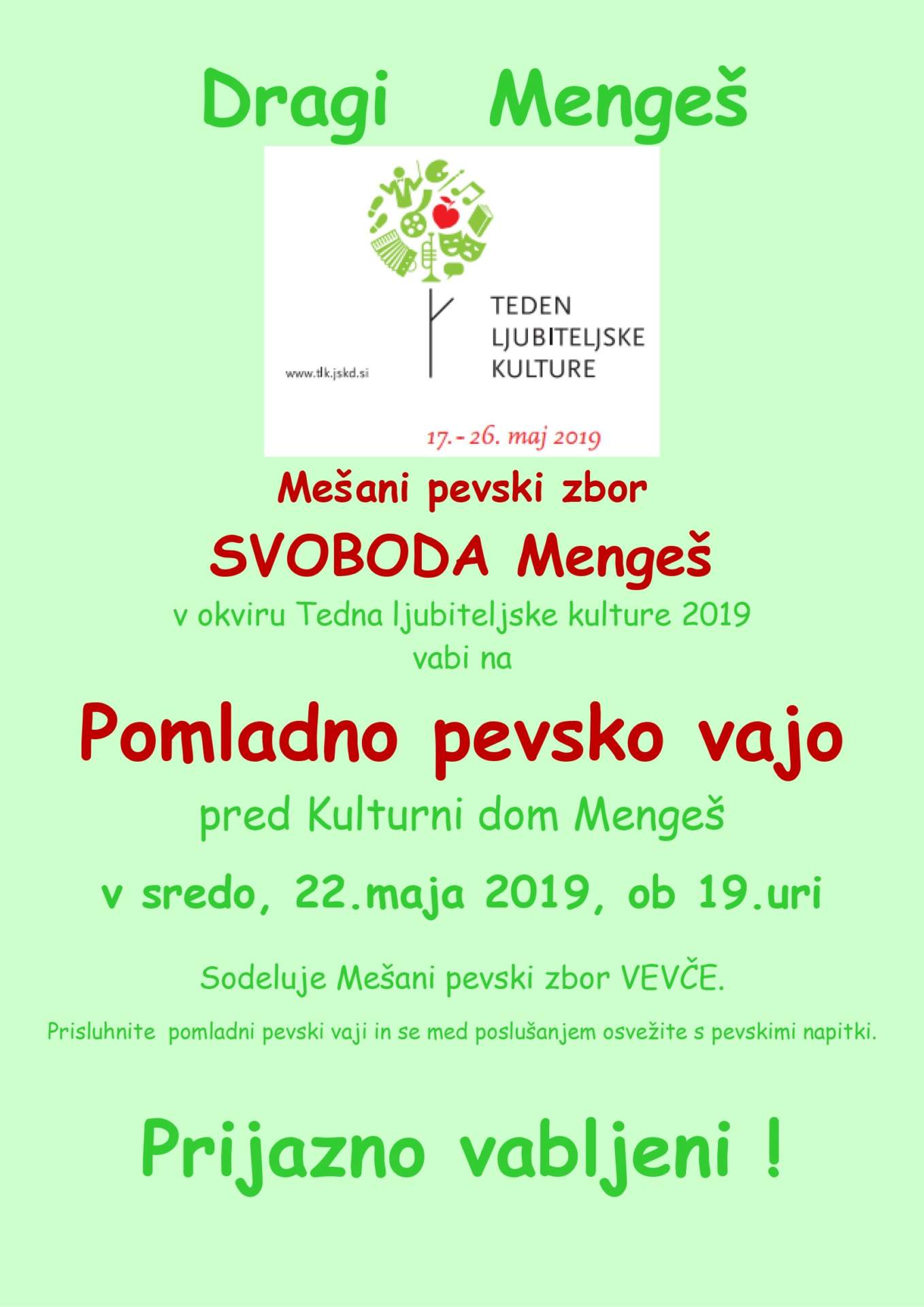 Mešani pevski zbor SVOBODA Mengeš in zborovodkinja Nana Weber vabimo v okviru Tedna ljubiteljska…