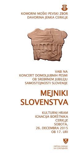 Kulturni hram Ignacija Borštnika Krvavška cesta 4,Cerklje na Gorenjskem,Gorenjska,SloveniaVečer domoljubnih pesmi ob srebrnem jubileju samostojnosti Slovenije Komorni moški pevski zbor Davorina Jenka…