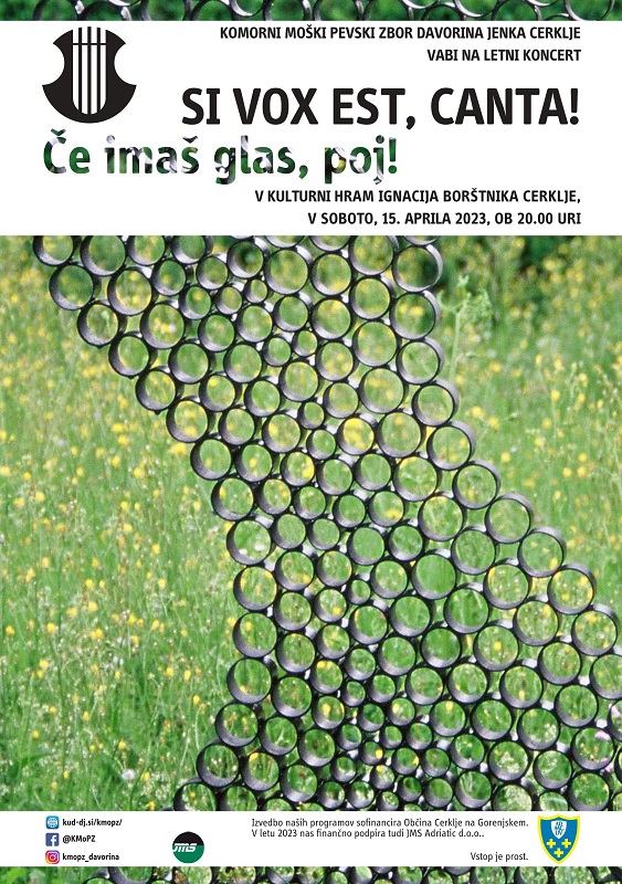 Pevci Komornega moškega zbora Davorina Jenka Cerklje bomo skupaj s Komornim zborom Limbar iz…