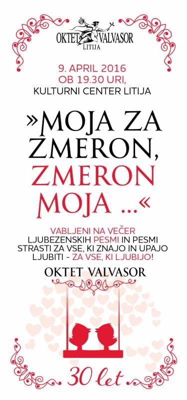 Kulturni center Litija Trg na Stavbah 8a,Litija,osrednje-slovenska,SloveniaVečer ljubezenskih pesmi in pesmi strasti za vse, ki znajo in upajo ljubiti -…