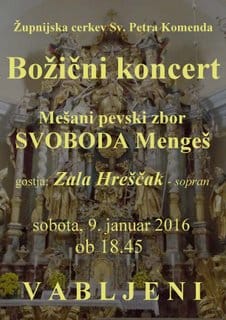 Cikel letošnjih Božičnih koncertov MePZ SVOBODA Mengeš zaključuje v cerkvi Sv. Petra v Komendi.…