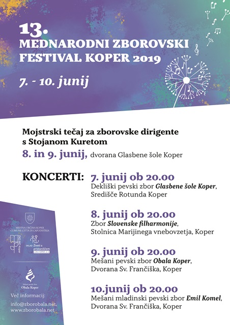 Središče Rotunda, stolnica Marijinega vnebovzetja, dvorana sv. Frančiška Martinčev trg,Koper,Slovenia13. Mednarodni zborovski festival Koper, ki ga organizira MePZ Obala Koper, bodo zaokrožili štiri…