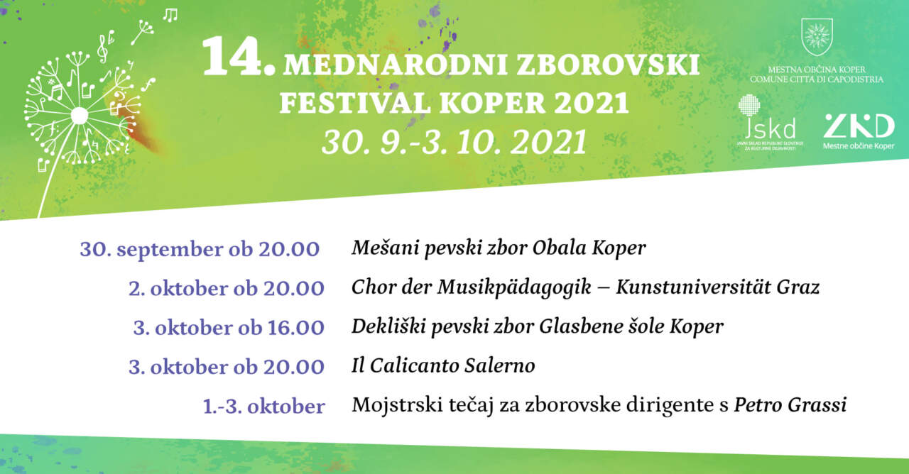 14. Mednarodni zborovski festival Koper MePZ Obala Koper 30. 9. 2021 ob 20.00 Dvorana…