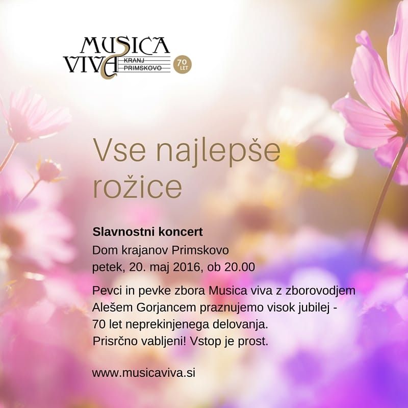 Mešani pevski zbor Musica viva praznuje visok jubilej - 70 let neprekinjenega delovanja. Pevci…