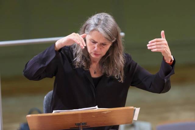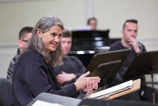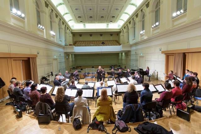 Grete Pedersen na vaji z Zborom Slovenske filharmonije
