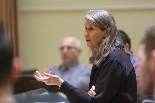 Grete Pedersen na vaji z Zborom Slovenske filharmonije Foto: Darja Štravs Tisu
