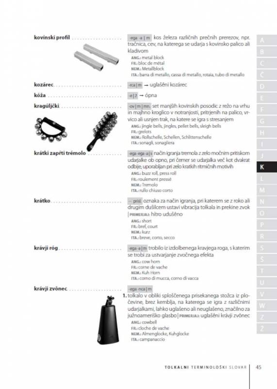 Nič več zadreg pri poučevanju, izvajanju in prevajanju iz tujega notnega materiala – pregleden in strokoven opis tolkal in tolkalnih izrazov zdaj končno tudi v slovenskem jeziku!