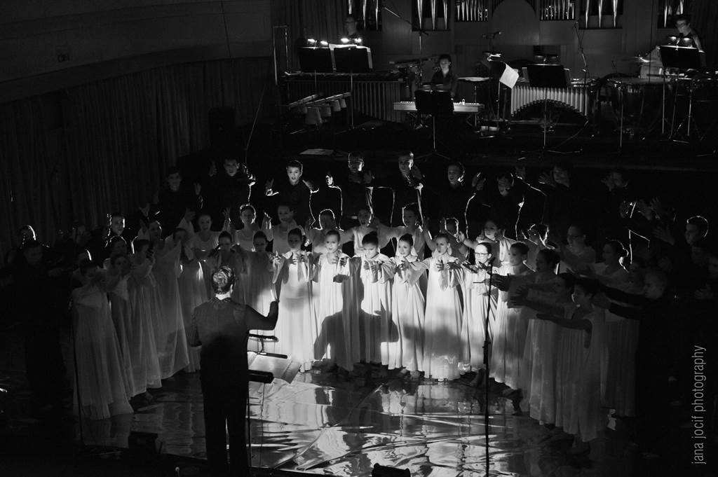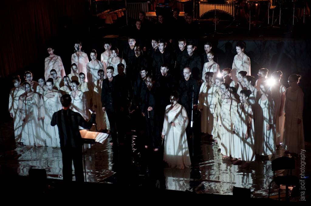 Na koncertu, ki se je v Dvorani Marjana Kozine odvil 24. maja 2014, so poleg Akademskega pevskega zbora Tone Tomšič Univerze v Ljubljani sodelovali še priznana flavtistka Mateja Bajt z asistentkami, tolkalca Franci Krevh in Tomaž Lojen iz Slovenskega tolkalnega projekta ter Klara Koradin na sintetizatorju in Peter Smolič, asistent dirigenta (oba tudi pevca zbora). Vizualno podobo koncerta – luči, projekcije, masko in kostumografijo je zasnovala mlada režiserka iz Števerjana pri Gorici, Jasmin Kovic, ki je o projektu povedala: