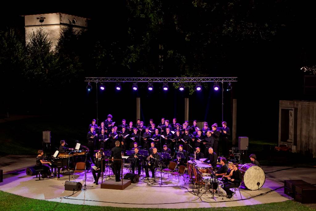 Na koncertih v katedrali na Krku, cerkvi sv. Jakoba v Ljubljani in na prostem v amfiteatru ob Gradu Kromberk, pri katerih je koprodukcijsko sodelovala ustanova Imago Sloveniae, so zazvenela tri večja kantatna dela iz svetovne zakladnice za moški zbor in soliste ter pihalni orkester, med katerimi je treba posebej izpostaviti tudi prvo izvedbo prav za to priložnost napisanega dela skladatelja Ambroža ČopijaMissa pro pace. Ob njej smo slišali še Berlinski rekviem (Das Berliner Requiem) Kurta Weilla in Poljsko mašo (Polní mše, vojaška maša na prostem) Bohuslava Martinůja. »Vsa tri dela povezuje izredna angažiranost, ki je sad premisleka o burnih zgodovinskih spremembah in nas še danes nenehno nagovarja in pripomore k skupnemu soustvarjanju zgodovinskega spomina,« smo še lahko prebrali v predstavitvi koncerta, zato ima tak program »ne le visoko umetniško, ampak tudi močno humanistično vrednost«.